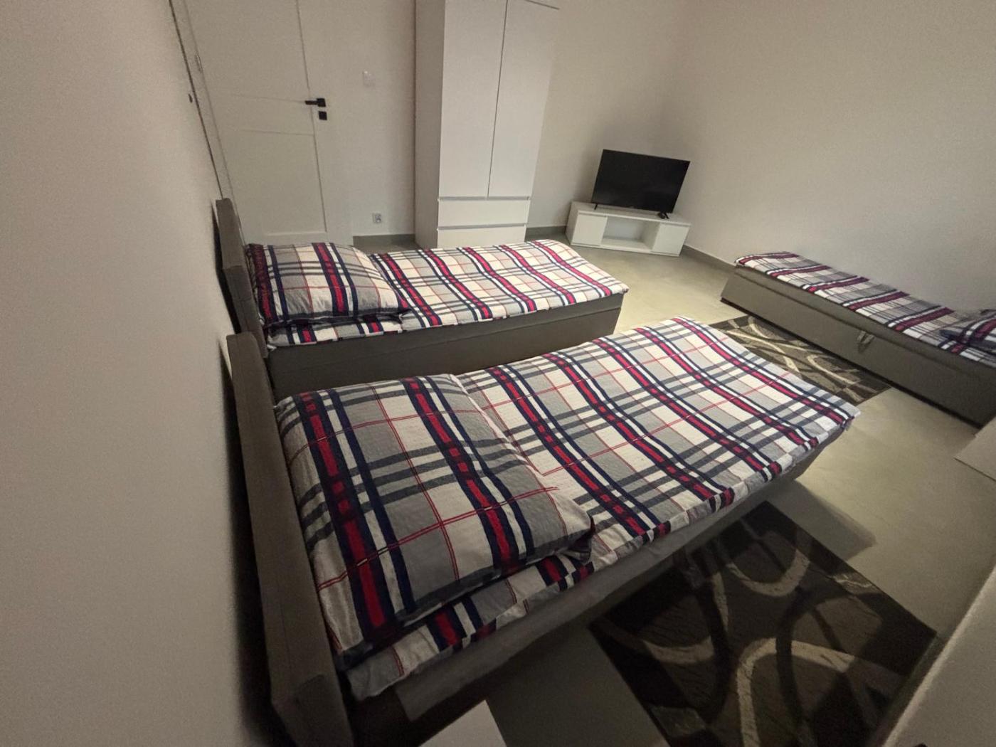 Pokój rodzinny. The spacious family room offers a washing machine, a private entrance, as well as a private bathroom featuring a shower and a hairdryer. Meals can be prepared in the well-fitted kitchen, which comes with a stovetop, a refrigerator, kitchenware and a microwave. The family room features a dining area, a wardrobe, an electric kettle, a tiled floor and a flat-screen TV. The unit offers 3 beds. Rodzinny - 4 osobowy. Powierzchnia pokoju ok.: 50 mkw. ;