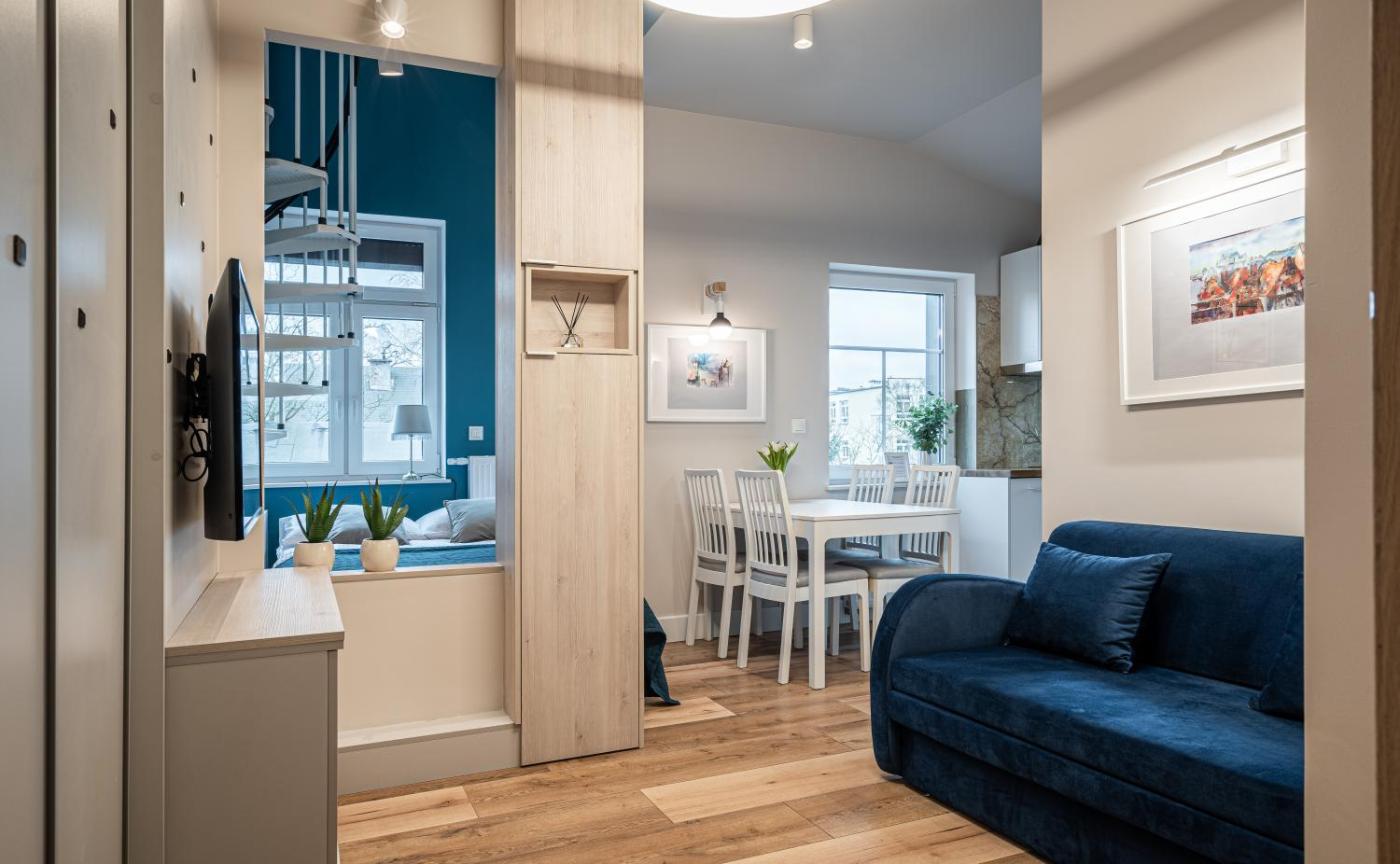 Apartament typu studio. Featuring a private entrance, this apartment consists of 1 living room, 1 separate bedroom and 1 bathroom with a shower and a hairdryer. In the kitchen, guests will find a stovetop, a refrigerator, a dishwasher and kitchenware. The apartment provides a washing machine, a seating area, a dining area, a wardrobe, as well as a TV with satellite channels. The unit offers 2 beds. Apartament - 4 osobowy. Powierzchnia pokoju ok.: 32 mkw.
